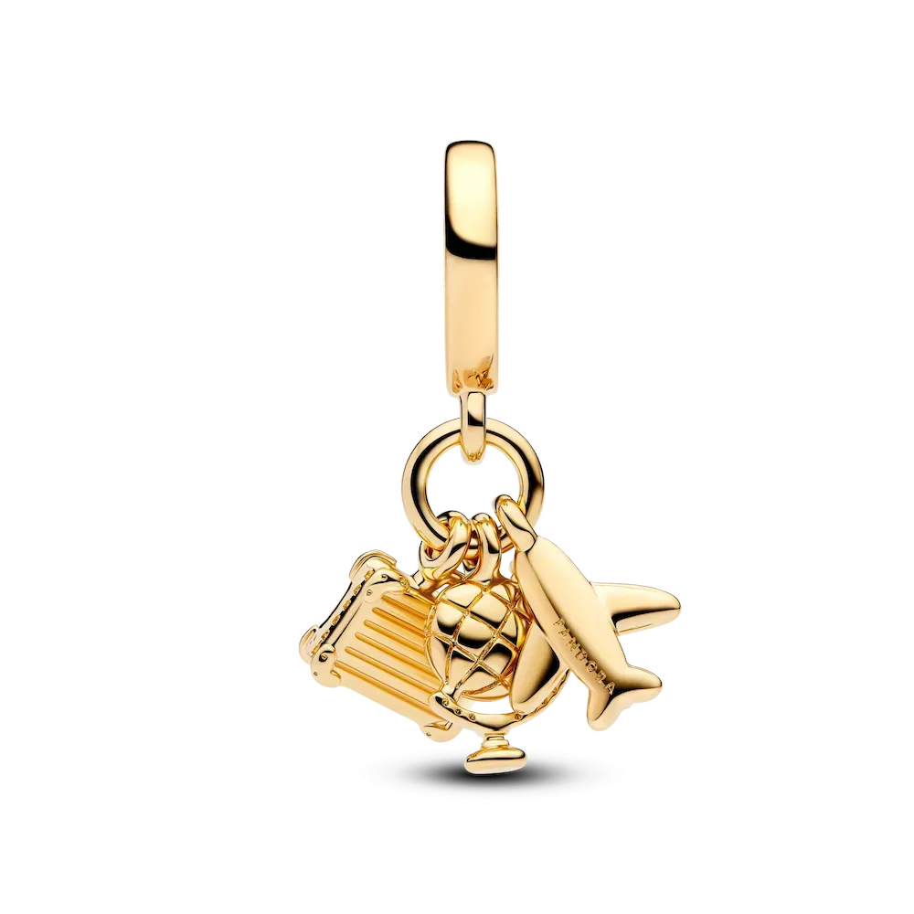 Pack up your favorite things in a charm that captures the spirit of adventure. Featuring a triple dangle design, this piece is perfect for those who love to travel and are always thinking about their next journey.