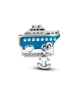 Let your nautical dreams set sail with the Anchored Cruise Ship Charm. From funnel and railings to rippling waves, every detail of this sterling silver piece is crafted to bring your ocean adventure to life. Raised microbeads in the enamel make up the portholes and the grooved anchor is connected to the ship with a knotted rope. Wear our Anchored Cruise Ship Charm as a reminder of all the exotic places in the world that you’d like to explore.