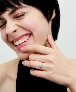 Wear a symbol of forever with the Clear Eternity Circle Ring. This sterling silver ring features one claw-set, cabochon-cut cubic zirconia stone. The polished band wraps around the center stone in an openwork braided infinity pattern. Whether you want to carry a reminder of eternal love or a symbol of the timeless joy that infuses each and every moment, this colorful eternity ring will bring sparkling meaning to your look.