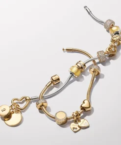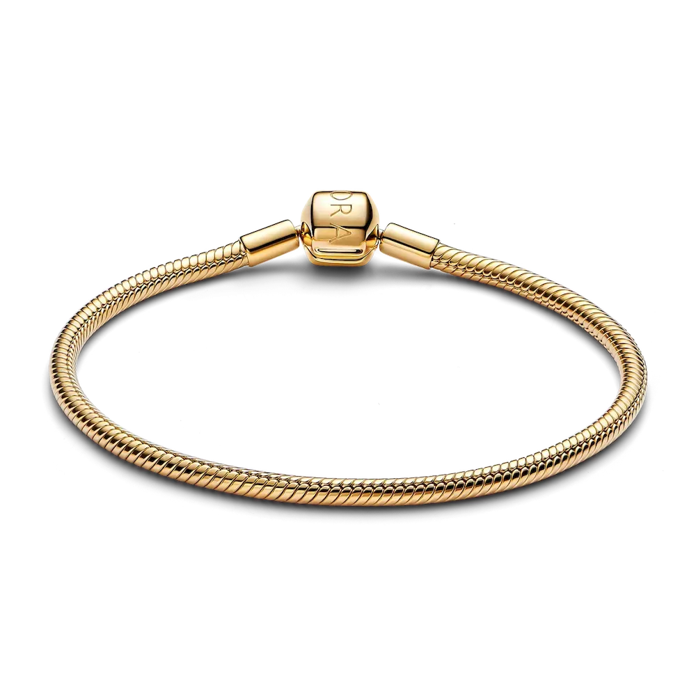 Style more of the charms you love, with our shake chain bracelet with a barrel clasp in 14k gold plating. A long-standing part of Pandora heritage, the barrel clasp was one of our first ever snake chain bracelet designs. Here, it gets a modern update, reimagined with sleeker details. Celebrate Pandora’s history with this iconic piece and let the staple live on as a part of your collection.