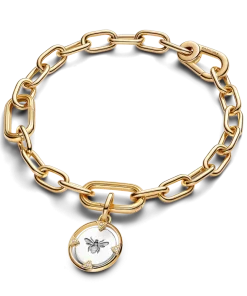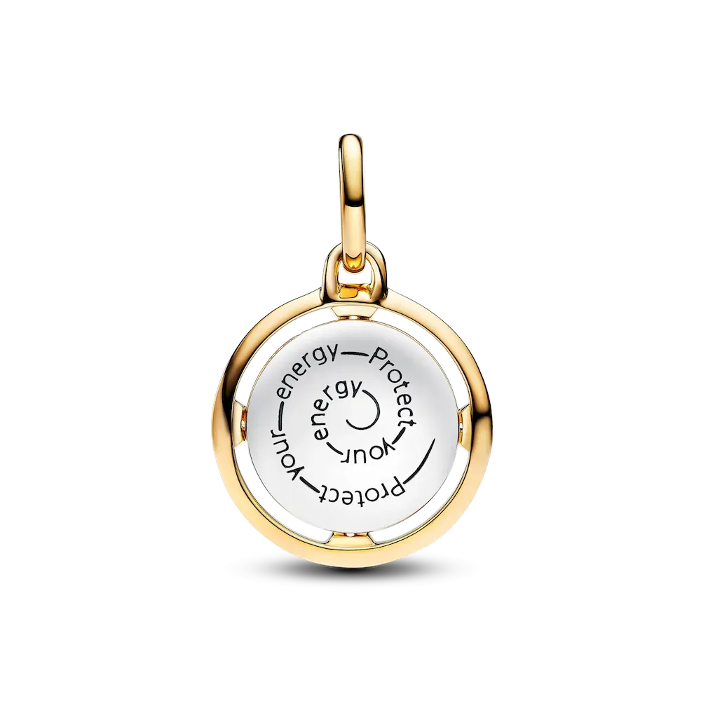Bring positive energy and productivity into your life with our 14k gold-plated bee medallion. Our dual-sided charm features an imprinted bee with four triangular pointers set with sparkling stones on one side and the engraved message
