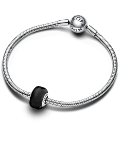 Add impact to your charm styling with our Black Mini Murano Glass Charm. This new charm design has a smaller size than our other Murano charms and a slightly squared shape, creating new ways to play with colour and dimension in your charm line-ups. The core is made from sterling silver and fits on any Pandora Moments charm holder. Pair it with your favourite sterling silver charms or get creative and mix with the same style in other colours.