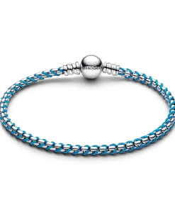 Braided sterling silver box chain with a touch of turquoise textile cord. Elevate your style with a unique combination of fabric and metal.