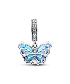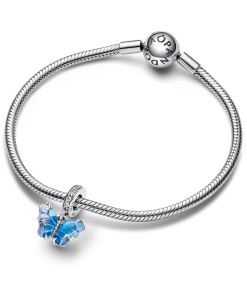 Transform into your best self with the Blue Murano Glass Butterfly Dangle Charm. This hand-finished sterling silver charm features Murano glass wings in a bicolored blue gradient with a cut-out sterling silver pattern on the back that shows through the glass, and sterling silver swirls on the front. Microbeads on the butterfly’s body and pavé on the bail add a touch of delicate detail and sparkle. Add this blue butterfly to your styling as a powerful symbol of hope, transformation and new beginnings.