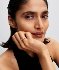 Get wrapped up in sparkle. This sterling silver ring features three bows delicately set with stones as a nod to life’s carefully tied moments.