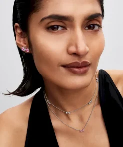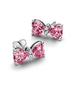 Some ties never come undone. Get wrapped up in our bow stud earrings, made of sterling silver and set with heart-shaped pink and clear cubic zirconia for a delicate symbol of grace.