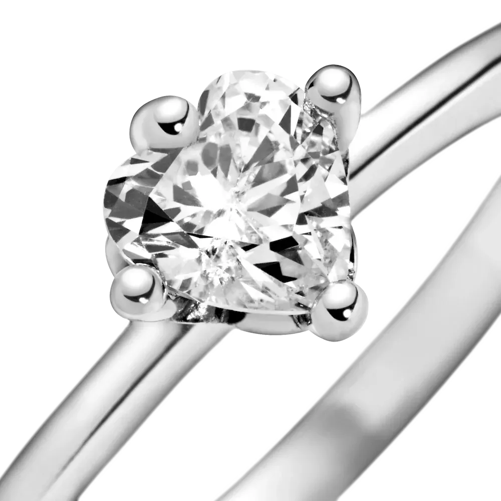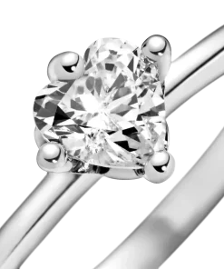 This solitaire ring features the symbol of a promise: a single heart-shaped clear cubic zirconia. Perfect as a gift to your loved one, this sterling silver ring offers up the emblem of a solitary heart—your heart—for the wearer to love and cherish. Look at the heart solitaire ring closely and you’ll see the claw setting has freehand heart outlines. This ring stacks well with others from this collection to add a little sparkle to your everyday.