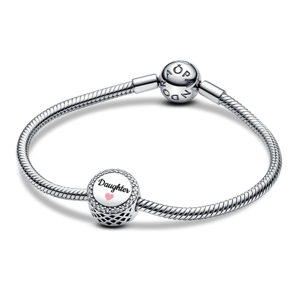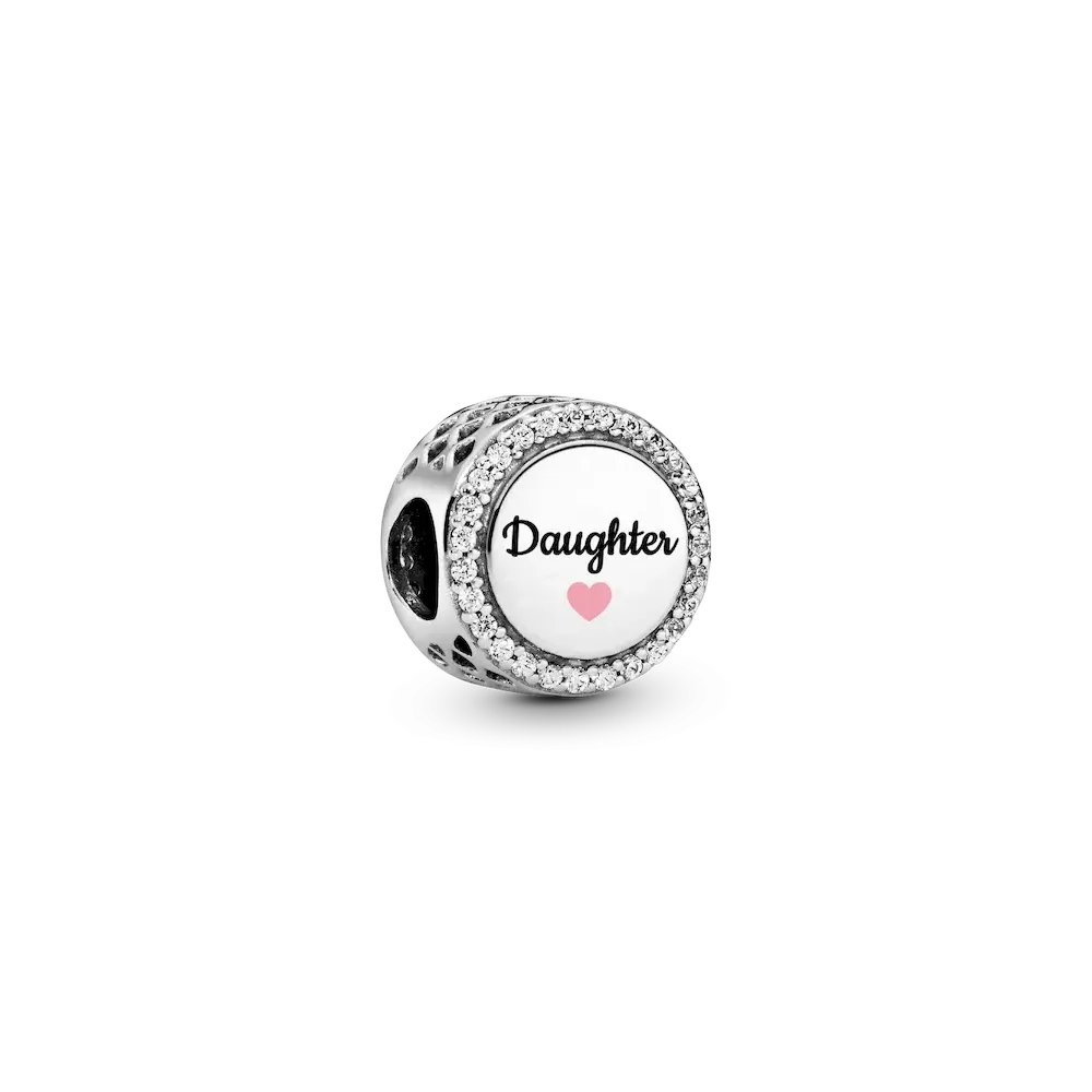 Celebrate your unbreakable bond with this stunning Engravable Daughter Charm. Featuring a dazzling row of pavé cubic zirconia and engraved with