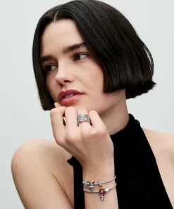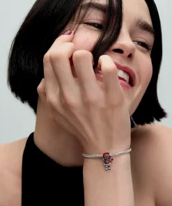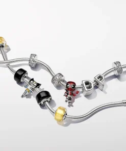 Hand-finished in sterling silver, this legendary bracelet features the iconic snake chain pattern and a Marvel logo brick clasp detailed with slightly raised letters in white enamel. Also in sterling silver, the Marvel Deadpool Charm showcases Deadpool in basse-taille enamel technique. The woven pattern beneath his fully-equipped body suit adds depth, and he’s captured mid-action, forming a peace sign with one hand. Deadpool fans will appreciate this detailed charm that brings the Merc with a Mouth to life. Crafted in sterling silver, the Marvel Wolverine Charm depicts Wolverine mid-action. His arms and iconic long claws are crossed over his chest, with intricate raised detailing and metallic-effect enamel touches. This charm is perfect for fans of Marvel’s fierce and iconic character, Wolverine.