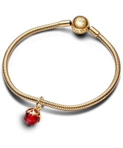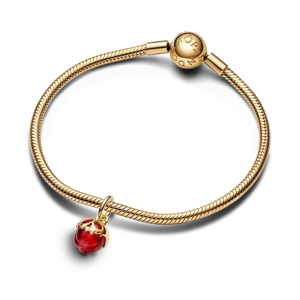 Pick your poison with our 14k gold-plated red apple charm inspired by the iconic Evil Queen from Disney’s Snow White. The tempting poison apple is crafted from red Murano glass and covered by a golden skull shape, creating a striking contrast.
