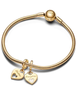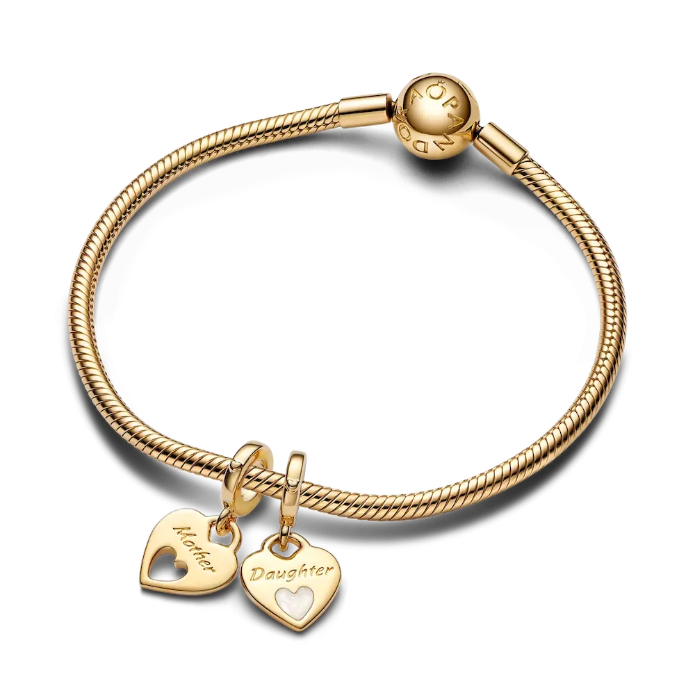 Remind her how much she means to you with this 14k gold-plated double heart charm, including two shareable pieces. The engravings across the two hearts read