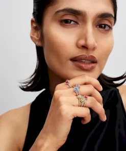 Embrace a dash of cool-toned color with the Elevated Pink Heart Ring. Made of sterling silver, this ring centers on a raised heart-shaped pink stone surrounded by pavé. A row of pavé along the top half of the band adds an extra dose of sparkle. Inspired by feelings of love and gratitude, this ring embodies all the warm and shining feelings that come from the heart.