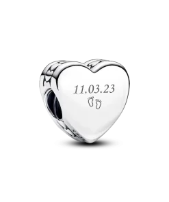 Show them the shape of your heart with the Engravable Heart Charm. Hand-finished in sterling silver, this meaningful love charm features a line of hearts on its side and can be styled on any Pandora Moments bracelet or charm holder. Embrace self-expression by engraving it on one side or both with a meaningful message, date or symbol. Pandora Engraving is only available in select stores and markets.