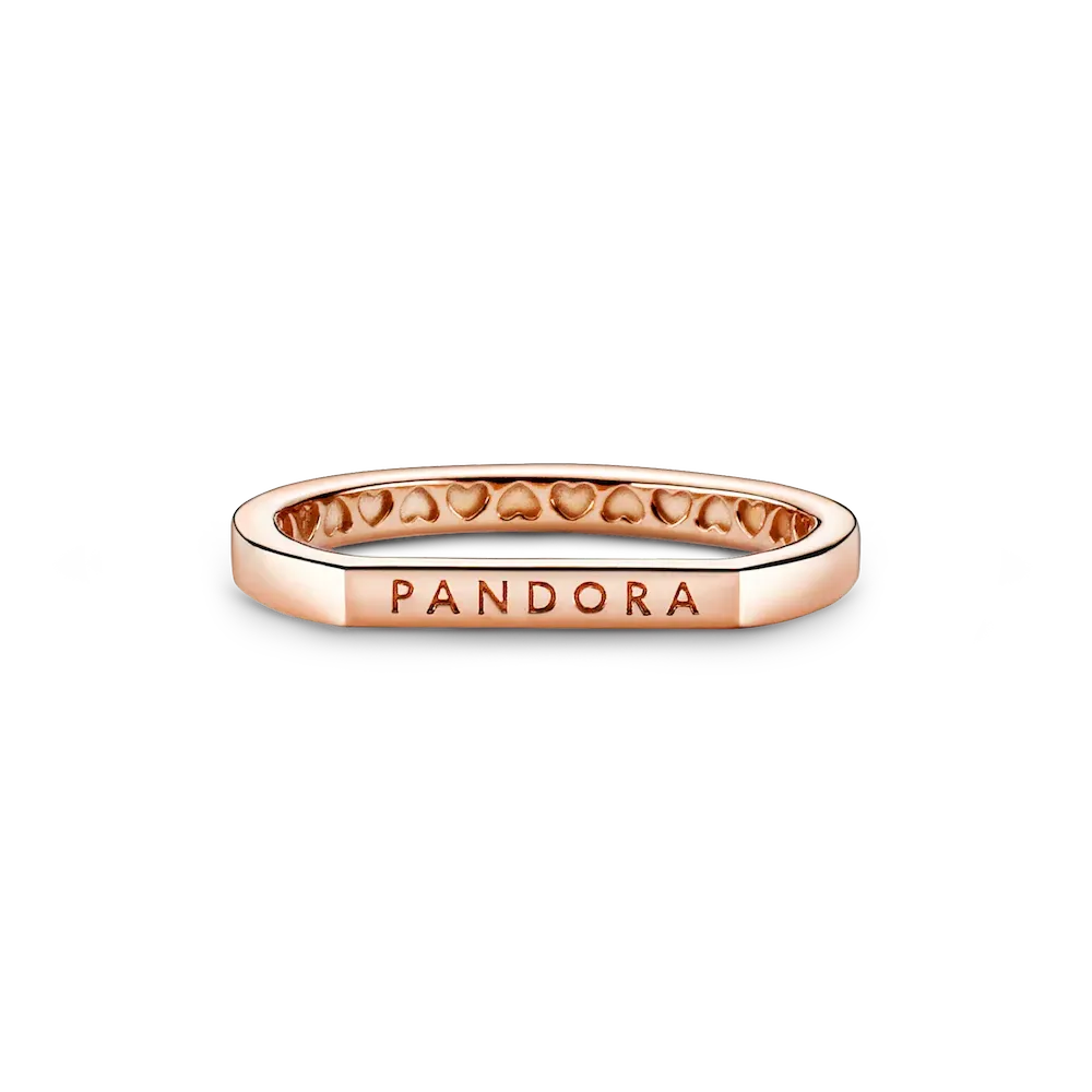 Upgrade your ring collection by adding the Logo Bar Stacking Ring. With a geometric shape and minimalist aesthetic, the ring is made of 14k rose gold-plated metal. Inside, a row of grooved hearts add texture and on the outside, a polished metal shine creates a play of light. Its slim silhouette is designed with stacking in mind, letting you easily combine this ring with other favorites.