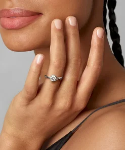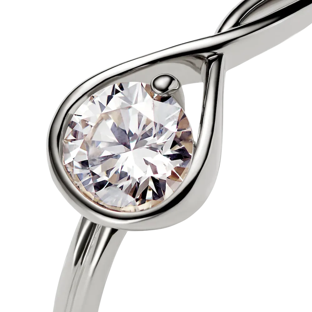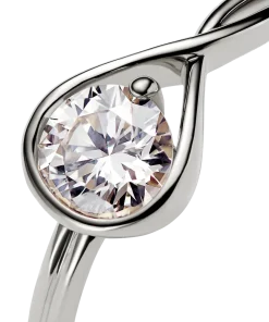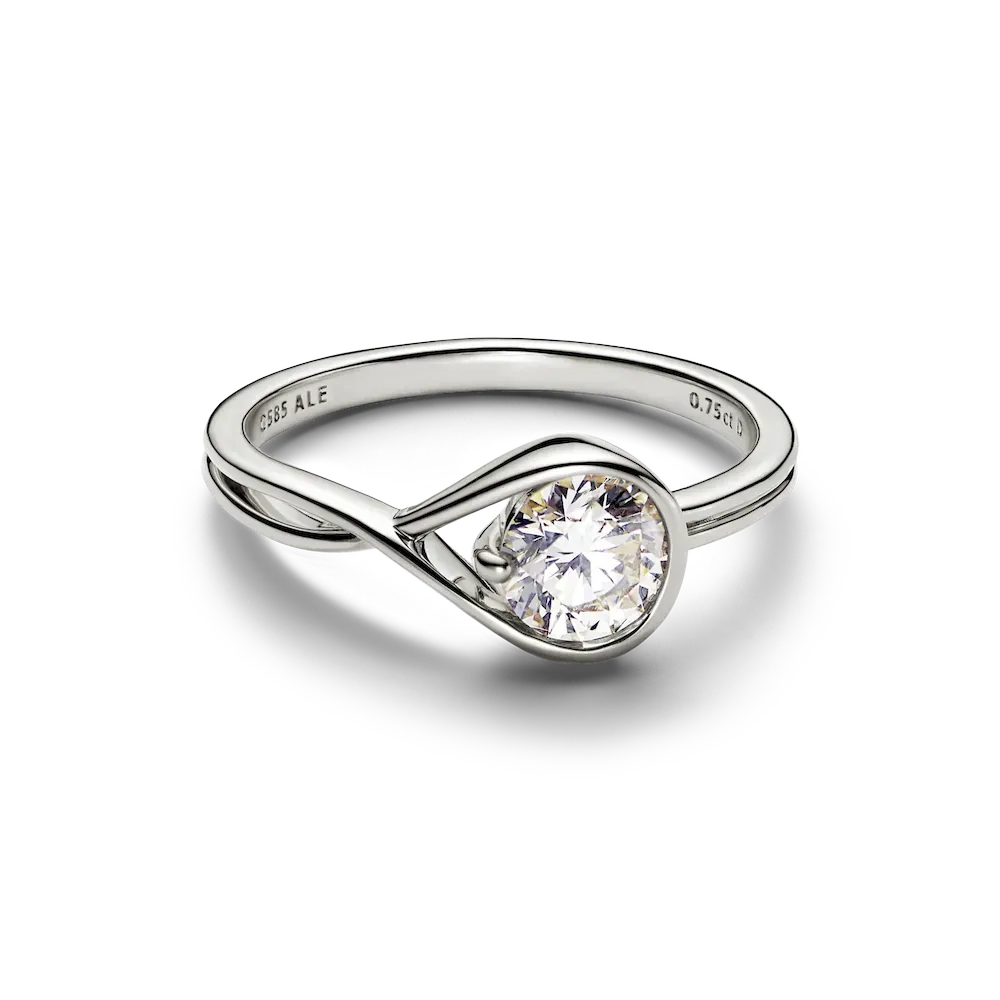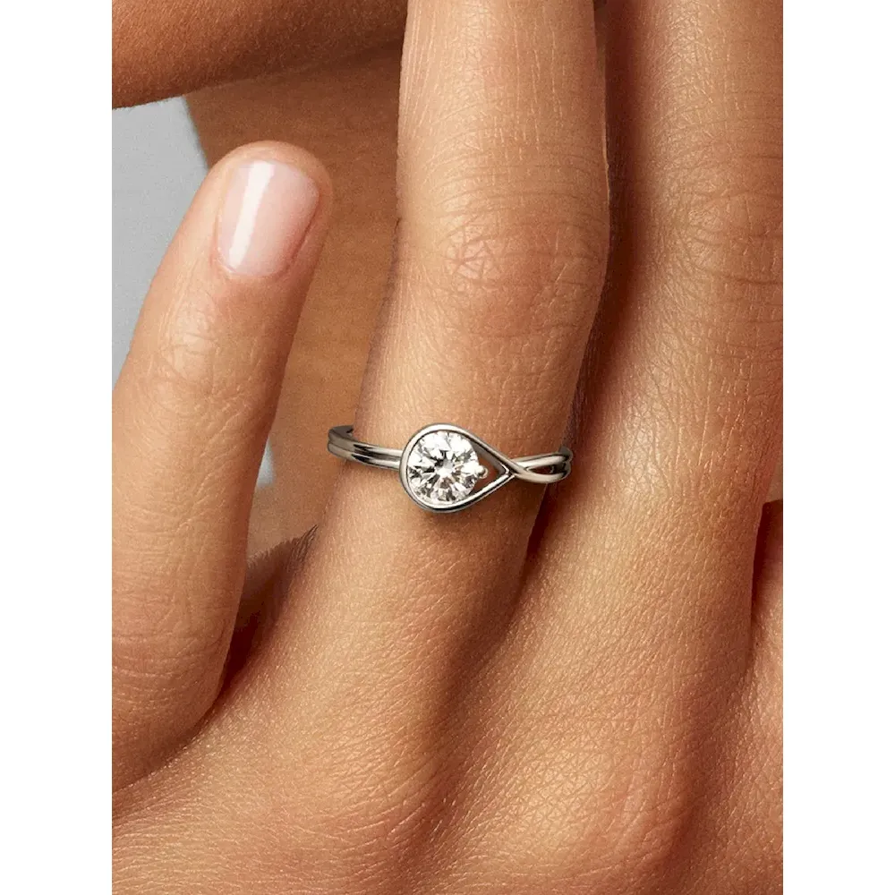 A solid 14k white gold ring hand set with a 0.75 carat lab-grown diamond. A beautiful statement of empowerment and possibility, or a simple yet eloquent declaration of love. This ring features a scintillating round brilliant excellent cut lab-grown diamond in a modern infinity setting that flows seamlessly around the stone. It can be worn alone or stacked with other rings from the Pandora Infinite collection. Pandora Infinite lab-grown diamonds at and above 0.50 carat are certified by IGI. Each Pandora Lab-grown diamond is treated with a post-growth colour enhancement called annealing.