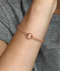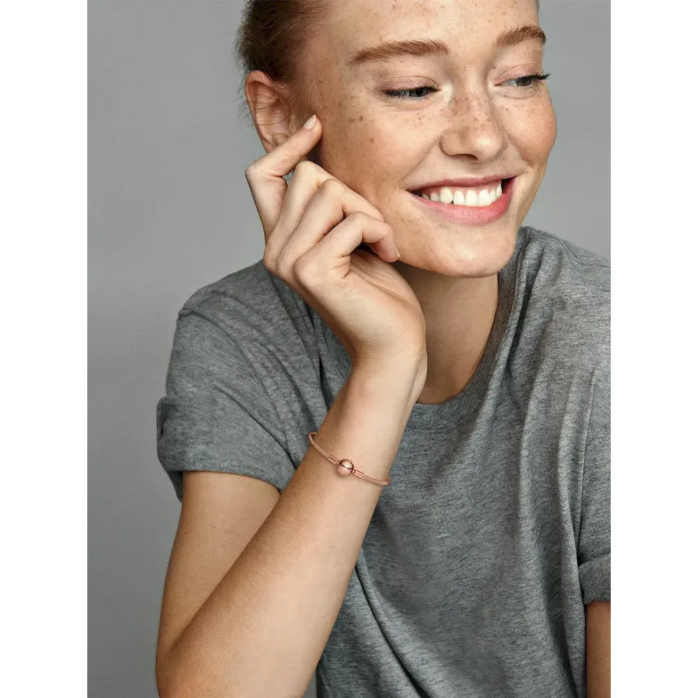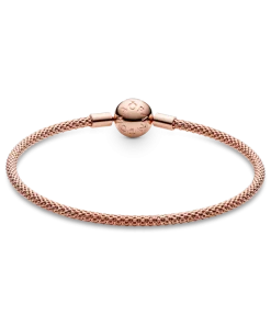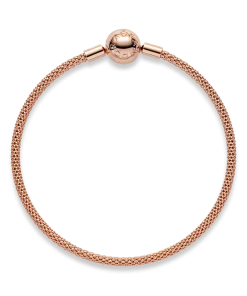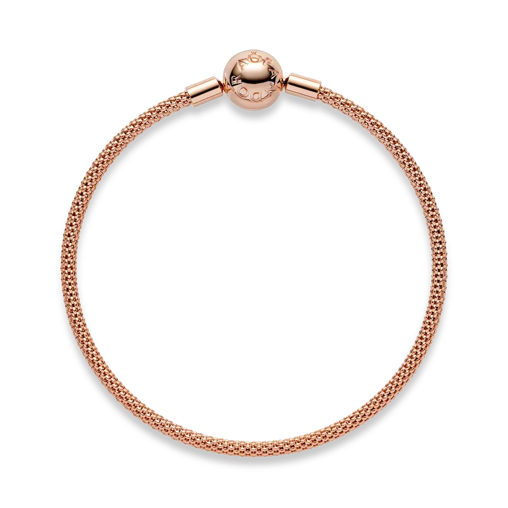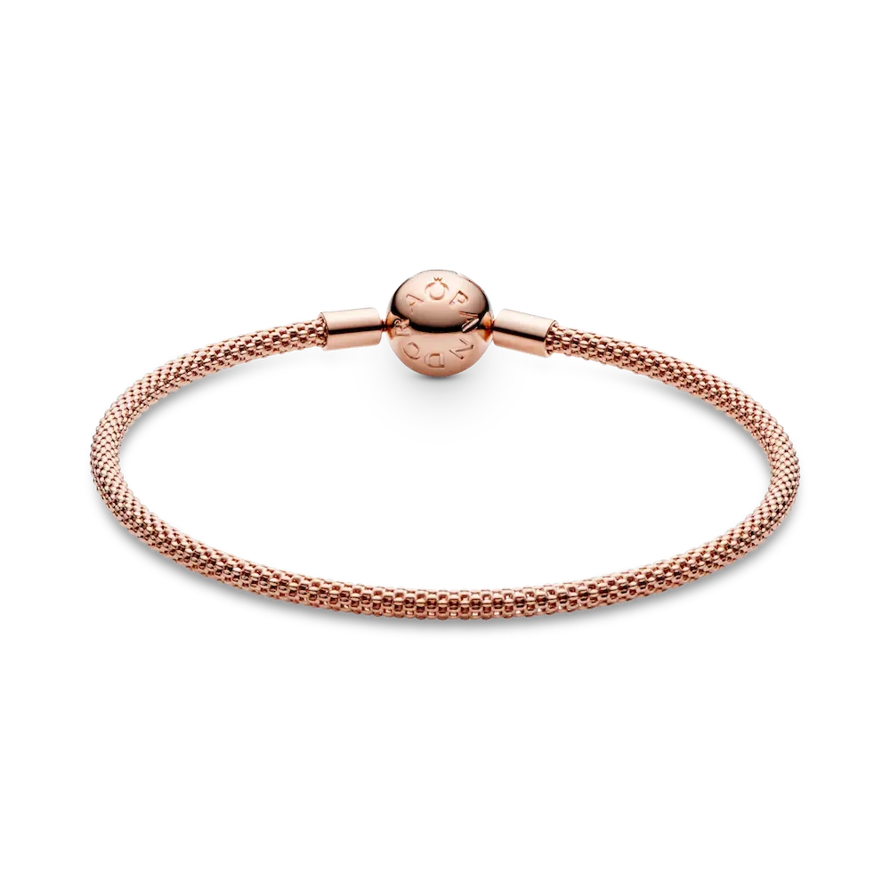 Start your next charm collection with this stylish Pandora Moments Mesh Bracelet with a textured finish. The 14k rose gold-plated bracelet’s woven mesh is perfect for adding contrast to layered looks and makes for effortless everyday styling. Wear yours solo or stack with other charm bracelets, adding favourite charms to suit your mood.
