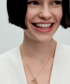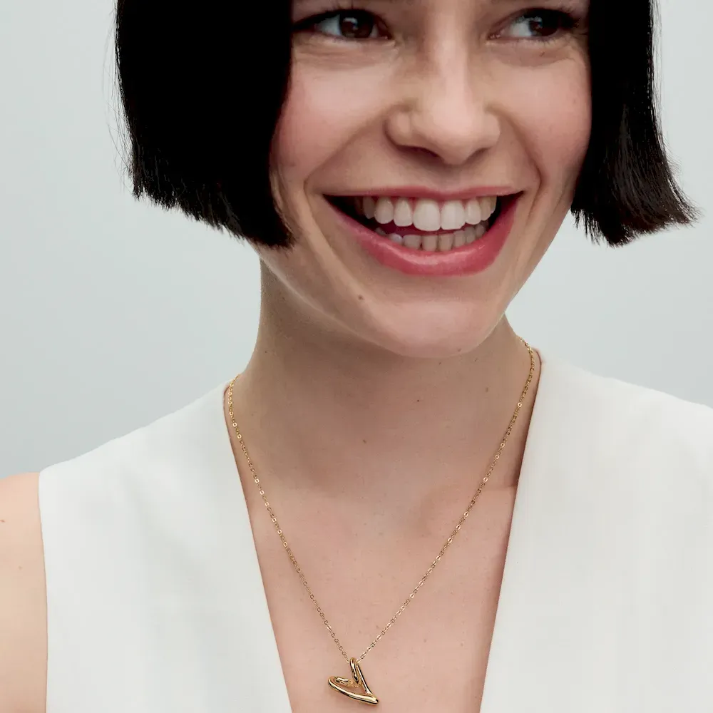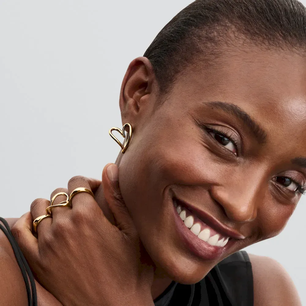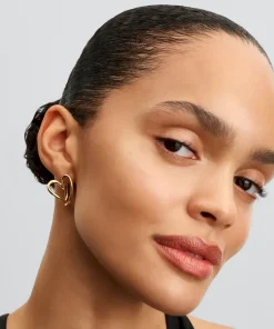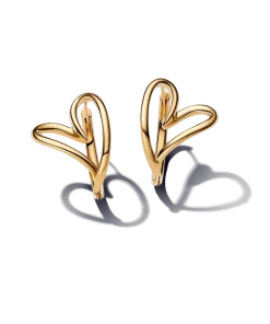 Celebrate love and nature with the Hearts Forever Jewelry Set. The Organically Shaped Heart Pendant Necklace features a twisted 14k gold-plated wire in varying thicknesses, creating a beautifully imperfect openwork heart. Adjustable for versatility, this necklace lets you choose how the pendant hangs—at an angle or straight. The matching Organically Shaped Hoop Earrings feature abstract openwork hearts, inspired by the natural world, and are finished in 14k gold plating. With their simple click closure and mirrored design, these earrings pair effortlessly with the necklace for a modern take on love and nature.