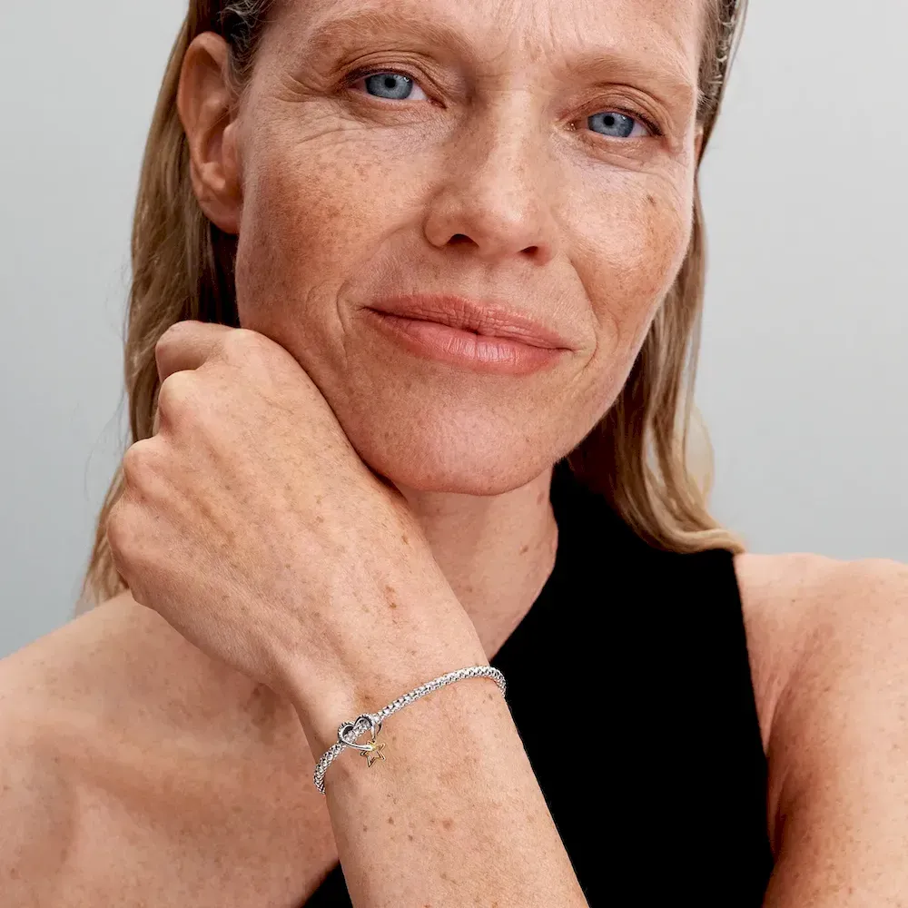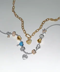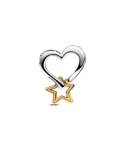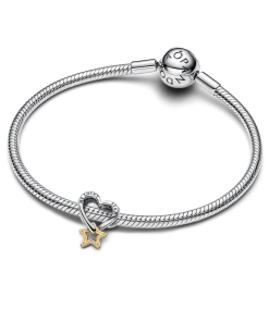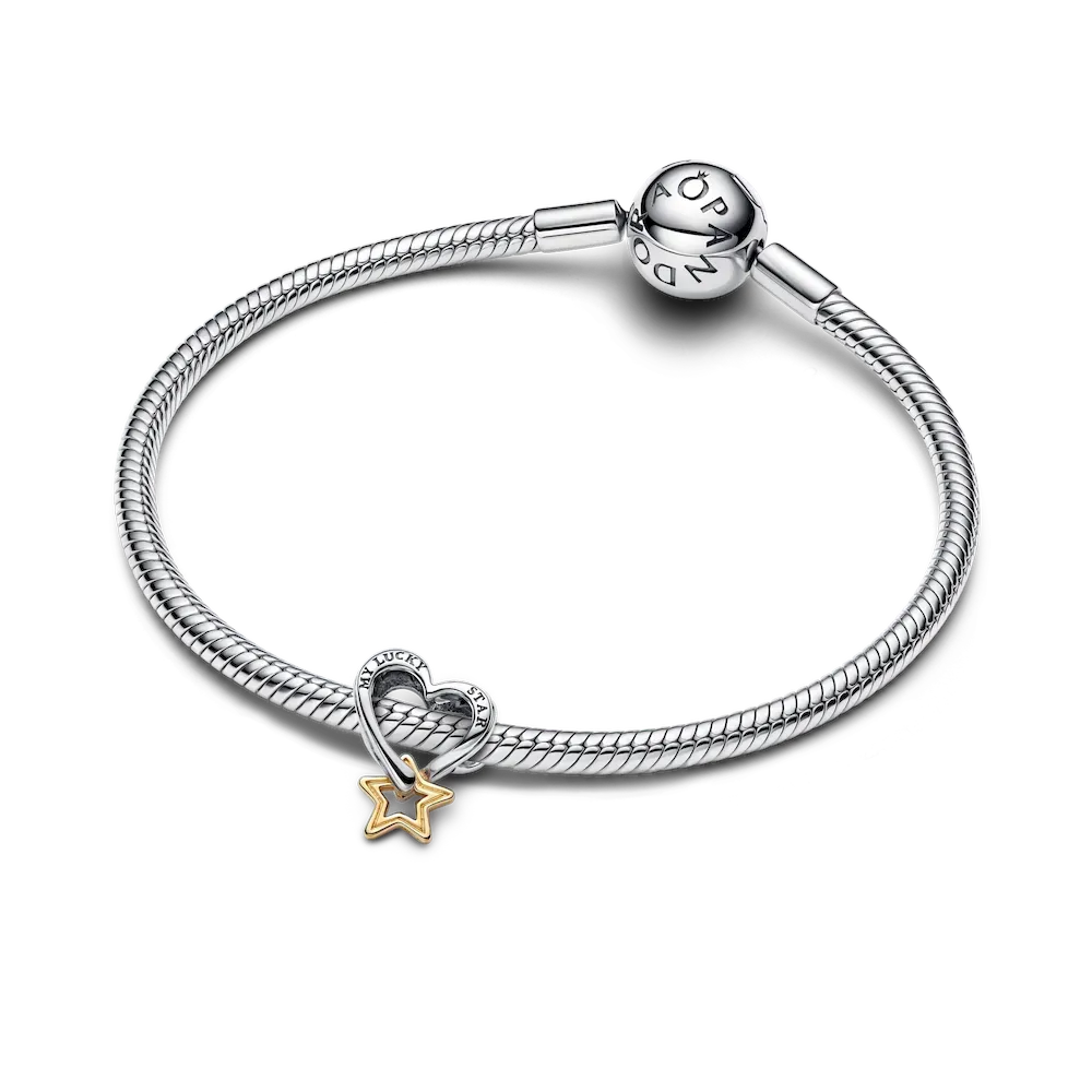 Love and luck unite in our mixed-metal Lucky Star & Heart Charm. A 14k gold-plated star dangles from a sterling silver openwork heart charm, engraved with the message