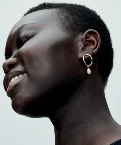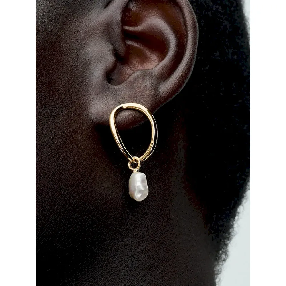 Introducing a new kind of classic with the Organically Shaped Circle & Baroque Treated Freshwater Cultured Pearl Earrings. Each earring features a baroque treated freshwater cultured pearl dangling from a slightly wavy, organic-looking 14k gold-plated oval with varying thickness. Each treated freshwater cultured pearl is unique and can vary in size and color; normal wear and tear may occur with this material. Our freshwater cultured pearls are treated with bleaching and luster enhancement.
