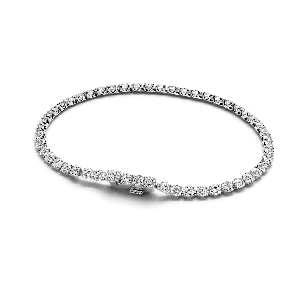 Our Pandora Era 14k White Gold Tennis Bracelet is the bracelet you’ll never want to take off. Featuring round brilliant-cut lab-grown diamonds that wrap all the way around the wrist, this contemporary take on a classic tennis bracelet radiates light from all angles. The bracelet is crafted from 14k white gold, while the diamonds are all prong set, allowing maximum light to reflect through the stones and make your jewelry shine brighter. To ensure our rigorous standards of quality in colour and clarity, each lab-grown diamond has undergone an additional high heat and pressure treatment prior to cutting and polishing. Please note, the total carat weight (ct TW) will vary based on size of bracelet: size 16 comes with 4.60 ct TW (46 stones), size 18 comes with 5.20 ct TW (52 stones), and size 20 comes with 5.80 ct TW (58 stones).