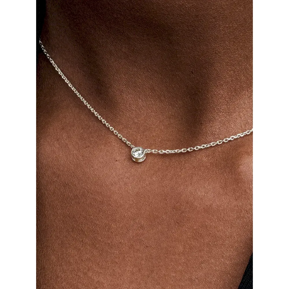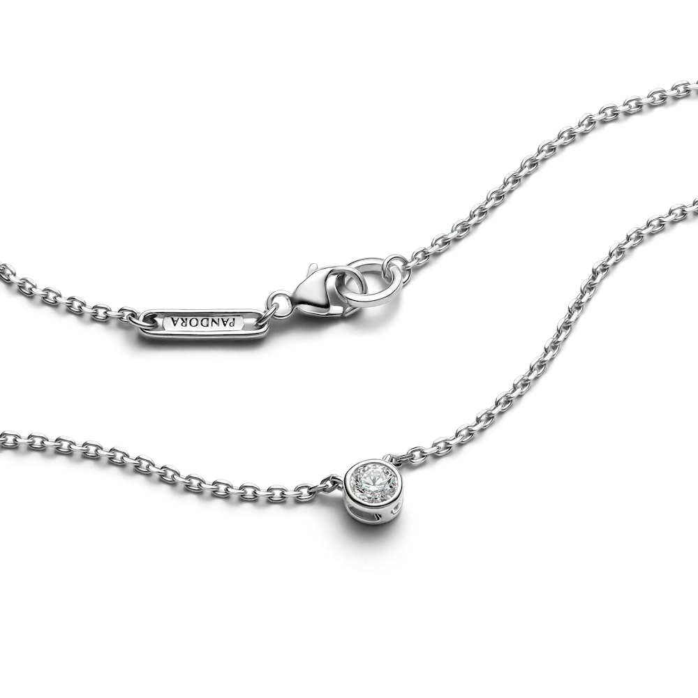 Meet your new essential Pandora Era Bezel Sterling Silver Lab-grown Diamond Pendant Necklace and earrings gift set. Our sterling silver pendant necklace features a 0.15 carat lab-grown diamond in a bezel setting with a sleek, contemporary aesthetic. Cut-outs on the back and sides of the bezel setting let in the light for ultimate sparkle. The pendant moves freely along a diamond-cut cable chain, adjustable to two lengths. The matching earrings feature a 0.15 carat lab-grown diamond in each earring, with a total carat weight of 0.30. A classic set that brilliantly rises above time, it’s the perfect elevated staple for your everyday looks.