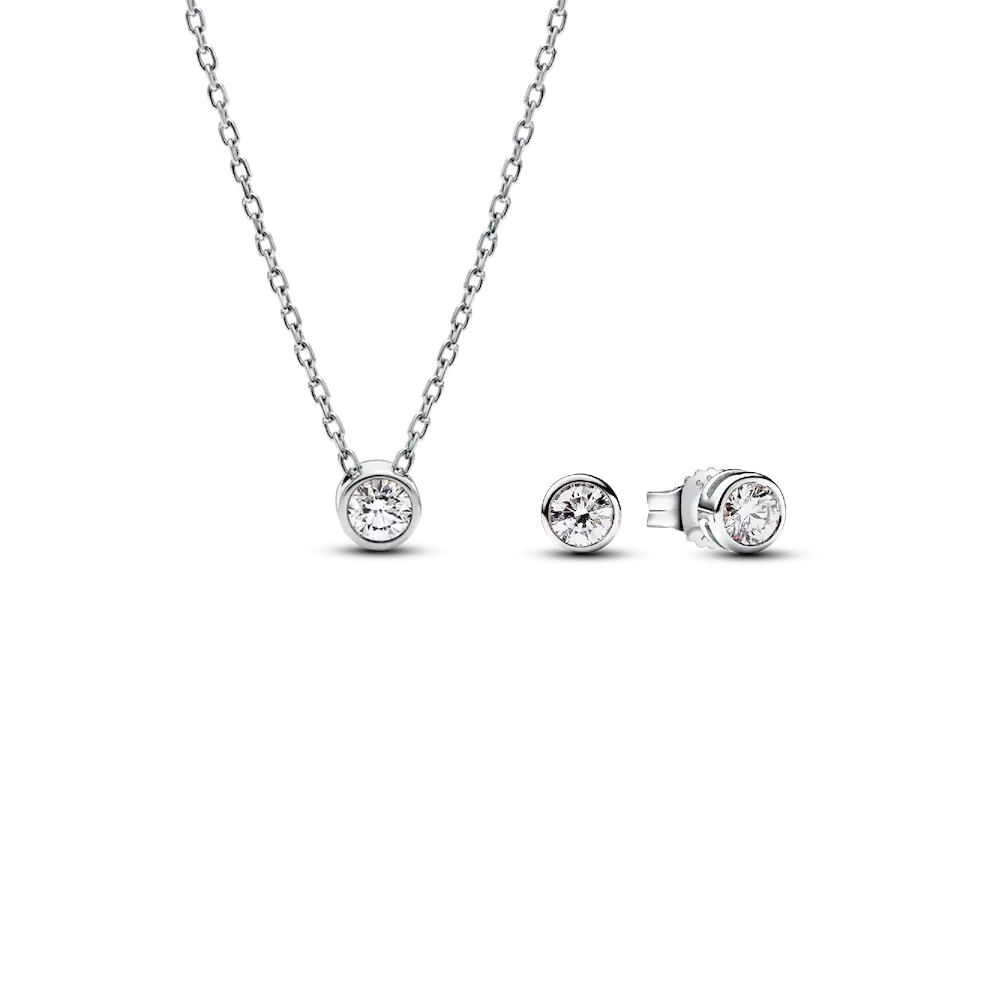 Pandora Era Bezel Lab-grown Diamond Pendant Necklace and Earrings set 0.45 carat tw Sterling Silver