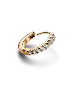 You can’t go wrong with 14k gold lab-grown diamond hoops earrings. It goes with everything, sparkles in all directions and is precious – just like you. Each hoop earring is encrusted with 8 round brilliant lab-grown diamonds, which wrap around half of the earring and are prong-set to allow maximum light to pass through the stone. To ensure our rigorous standards of quality in colour and clarity, each lab-grown diamond has undergone an additional high heat and pressure treatment prior to cutting and polishing.