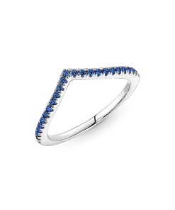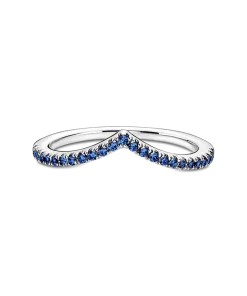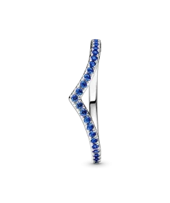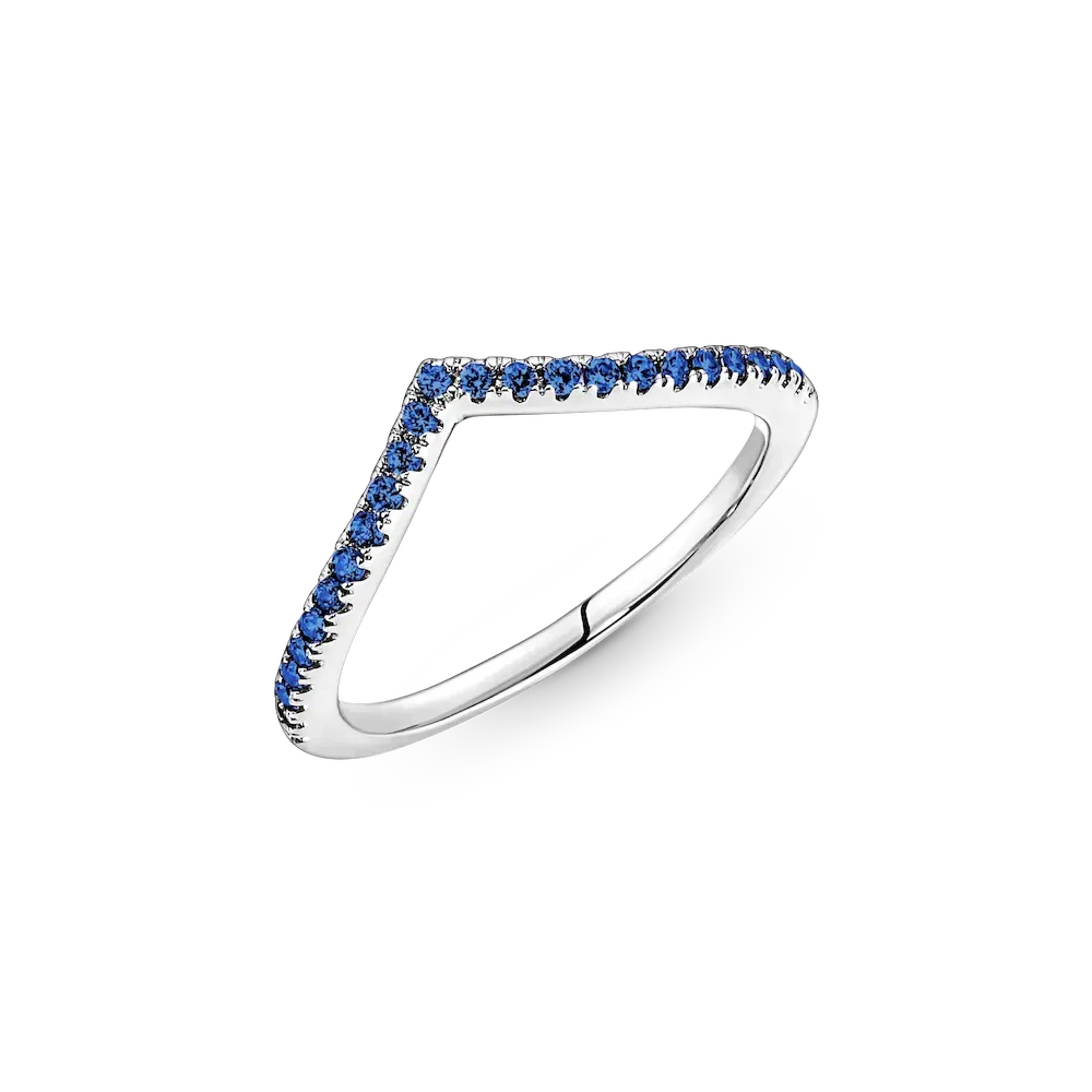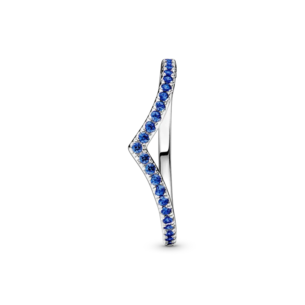 Our bestselling wishbone ring gets a colorful upgrade in this Pandora Timeless Wish Sparkling Blue Ring. Simple yet elegant, this wishbone-shaped sterling silver ring is lined with shining blue crystals and can be worn on its own as a shimmering statement, or stacks beautifully with other wishbone rings to create a unique look.